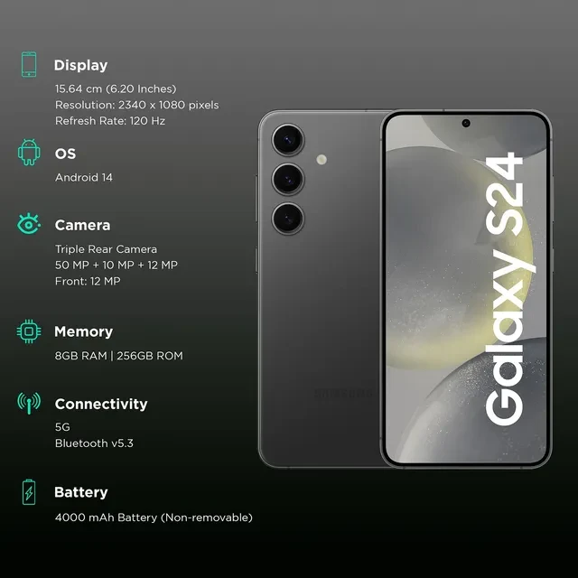 - Circle to Search, Live Translate, Note Assist, Photo Assist, Upto 29 Hours of Video Playback, Upto 78 Hours of Audio Playback, Armor Aluminum Frame, Corning Gorilla Glass Victus 2, IP68 Water Protection, Samsung Care+, Samsung Health, Samsung Wallet