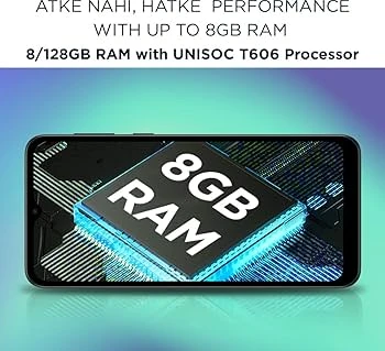 Experience a power-packed performance and a faster processing speed with 8 GB of RAM available on this smartphone. Store a myriad of photos, videos, songs, movies, files, and apps with the large storage space of 128 GB. You can also expand your memory to 1 TB with the addition of a micro SD card. Powered with a powerful UNISOC T606 processor, unleash all your superpowers in a jiffy.